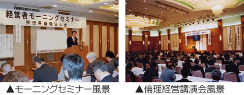 日々の経営の中から生まれた「事業体験」の報告を通し、倫理経営についての学びを深める勉強会。各市区の単位倫理法人会ごとに年数回開催します。